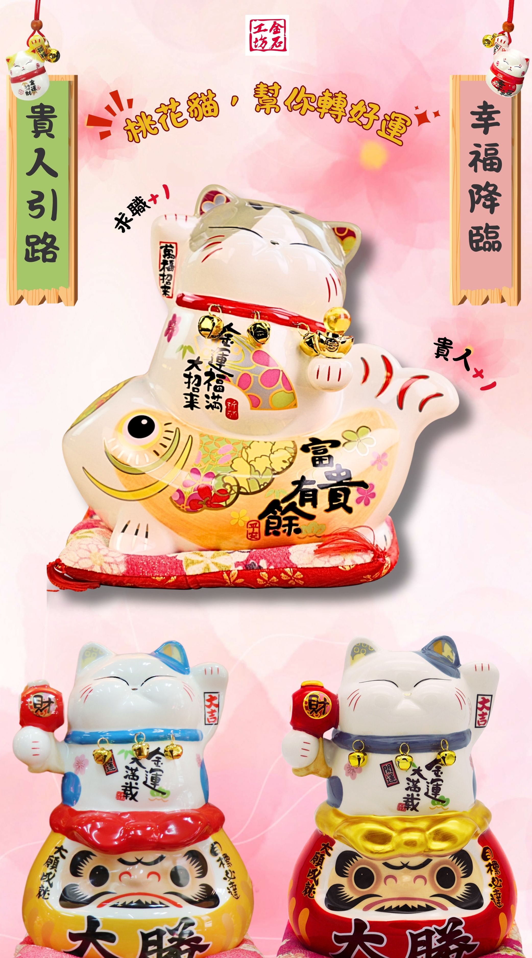 【全新配色】金運滿載波士桃花貓