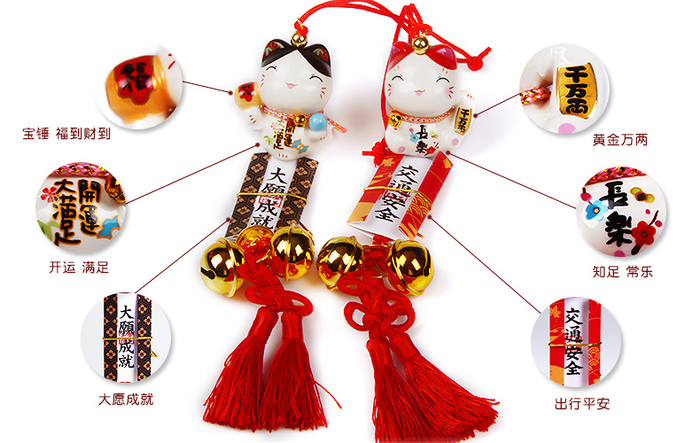 陶瓷招財貓尺寸:約4.5*5*3.5,線總長:約32cm,材質:陶瓷