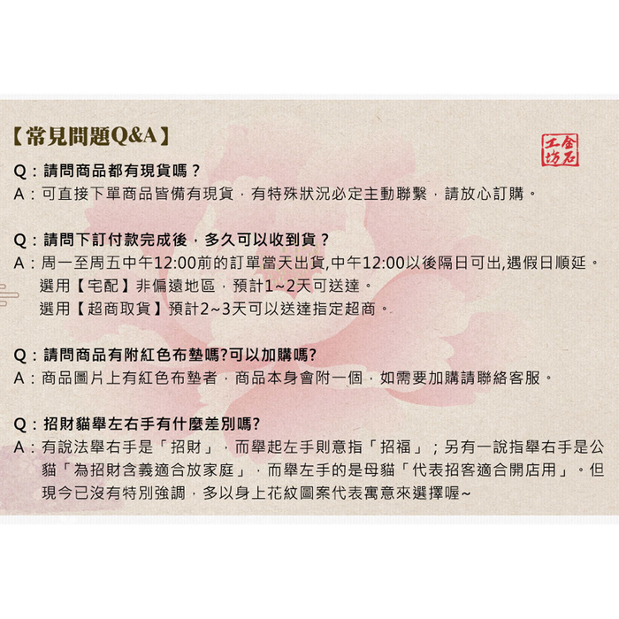 ※金石工坊提供『只退貨不換貨』服務(除商品瑕疵、品項不符例外),若有更換尺寸或是更換款式需求,請先申請退貨後再重新下單。